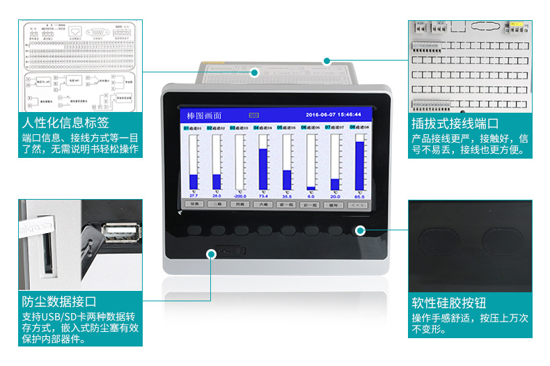 無紙記錄儀現(xiàn)已在在檢測、認證、家電行業(yè)、IT、疫苗冷鏈、食品儲運、博物館文物、檔案管理方面、建材實驗和驗收方面、農業(yè)及畜牧業(yè)中、重要醫(yī)衛(wèi)場所等中都得到運用。比方說,無紙記錄儀可以長時間記錄溫度變化的情況,可以為機電產品在工作時是否出現(xiàn)異常來提出一個參考數(shù)據(jù)依據(jù)。例如,洗衣機,電冰箱,空調,榨汁機,微波爐等(當然它們各自都有各自的標準),都需要做安規(guī)檢測(溫升檢測為安規(guī)中的一個部分)。進一步的說,大部分發(fā)熱類的電器都可能要進行安規(guī)檢測,也就是說大部分有機電實驗室,或者說相關實驗室的企業(yè)都可能用到無紙記錄儀。